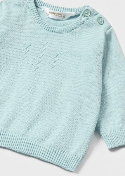 Jersey de manga larga para recién nacido. Botones en el hombro para facilitar la puesta. Bajo, puños y cuello de punto elástico para un mejor ajuste.